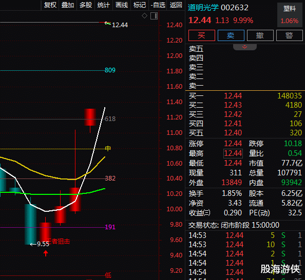 从技术面上来看,道明光学(002632)该股在板块的带动下,2天2板!2个交易日股价上涨了21.01%!短期看均线和MACD形成金叉行情后,有继续上扬的动力,主力资金净流入6457.2万元,该股入选龙虎榜,净买入额为8941万元。